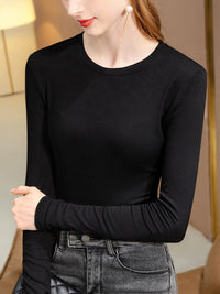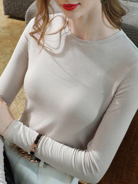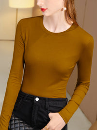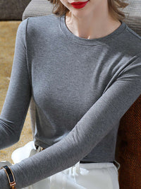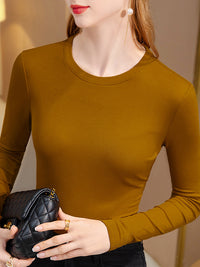 Casual Long Sleeves Skinny Solid Color Round-Neck T-Shirts Tops