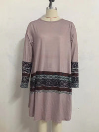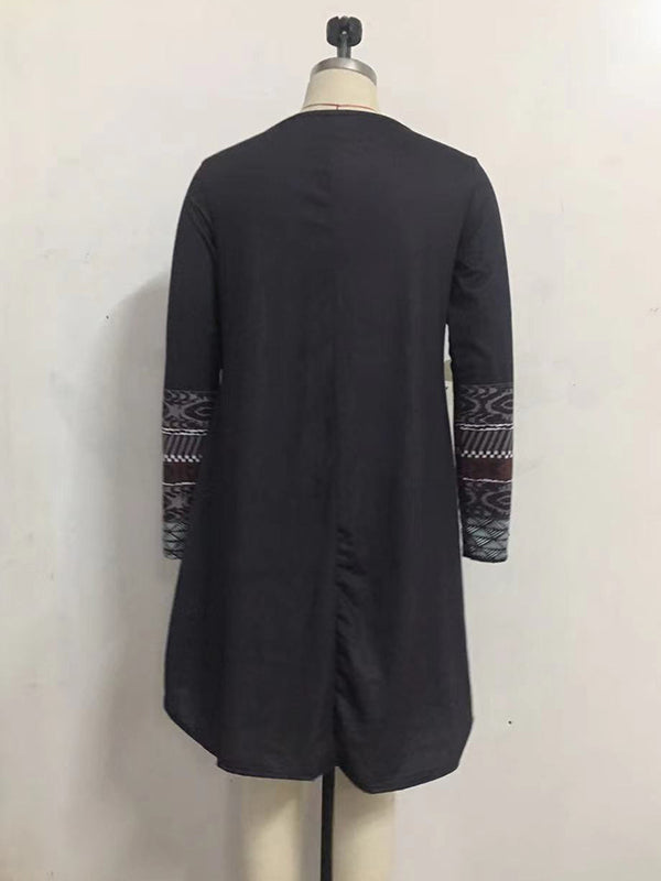 Casual Long Sleeves Striped Contrast Color Printed Round-Neck Mini Dresses