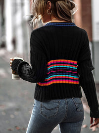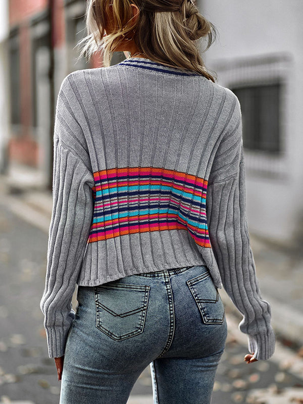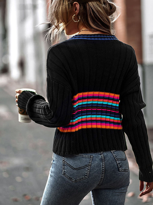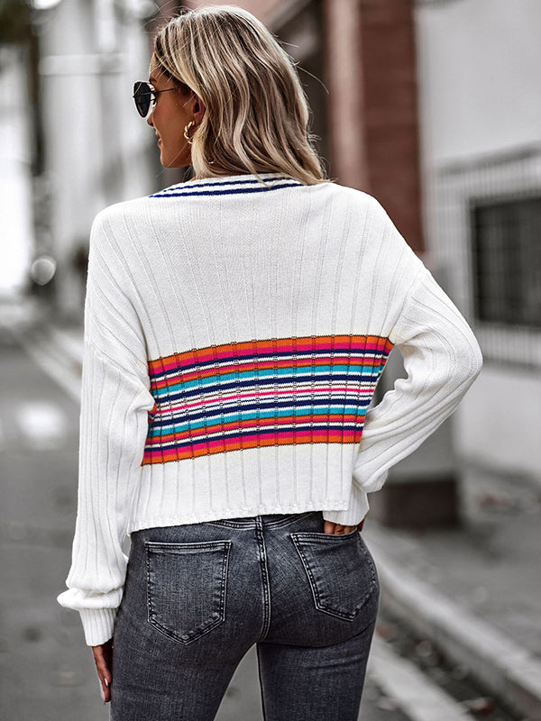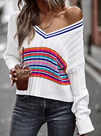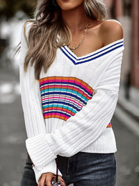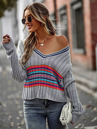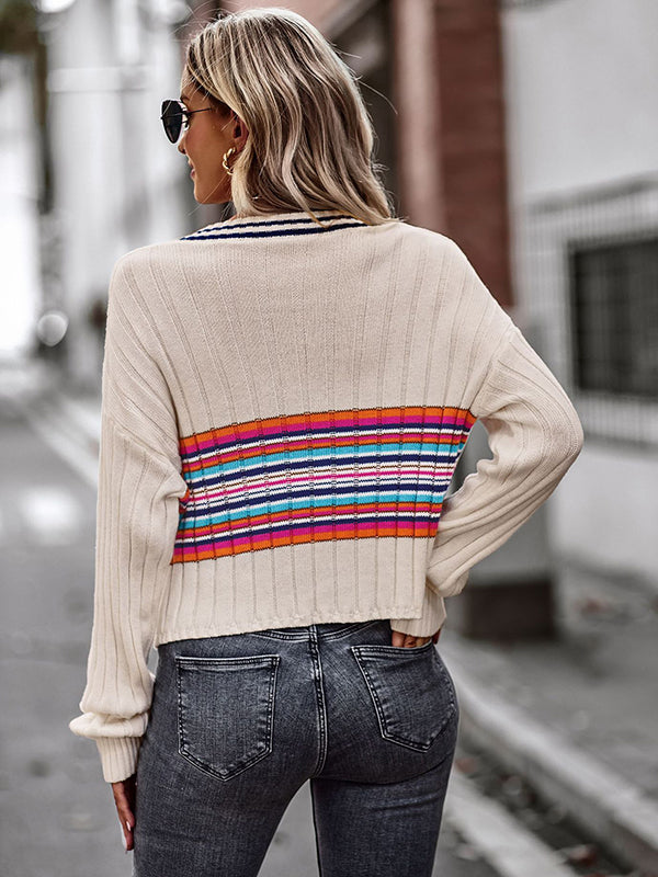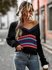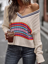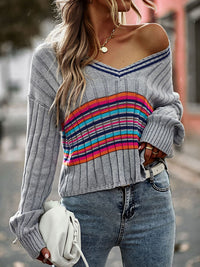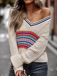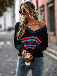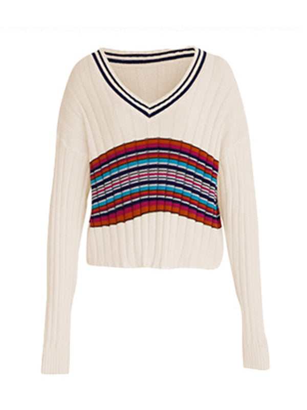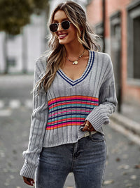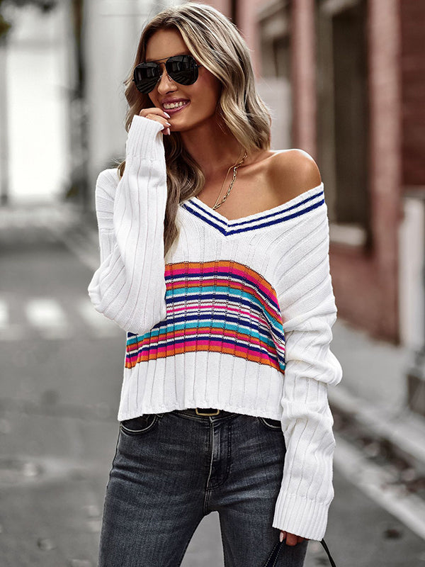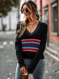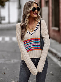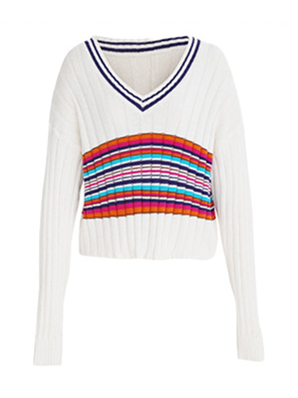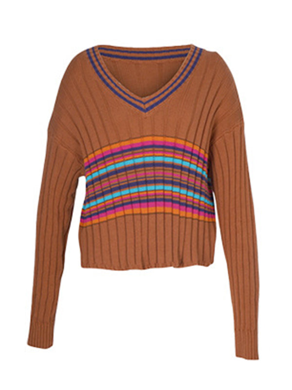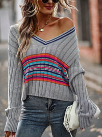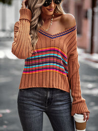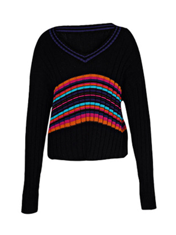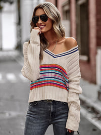 Casual Long Sleeves Striped V-Neck Sweater Tops