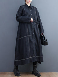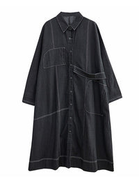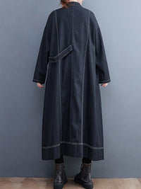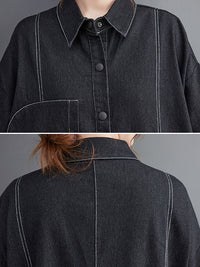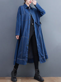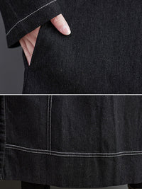 Casual Loose Long Sleeves Buttoned Lapel Collar Denim Trench Coats