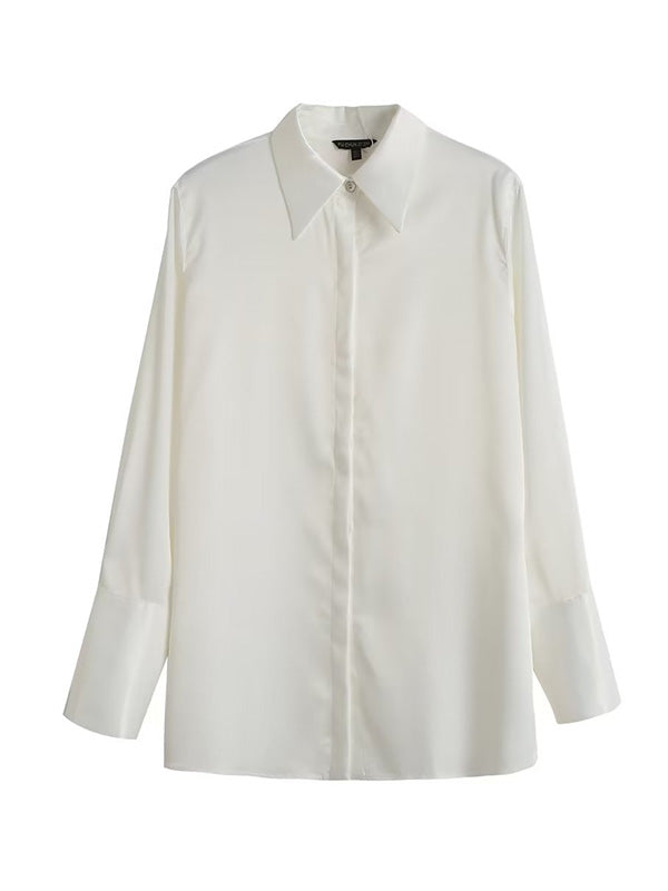 Casual Loose Long Sleeves Buttoned Solid Color Lapel Collar Blouses&Shirts Tops