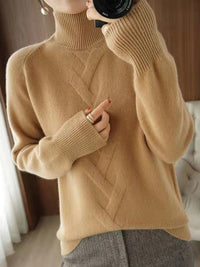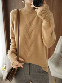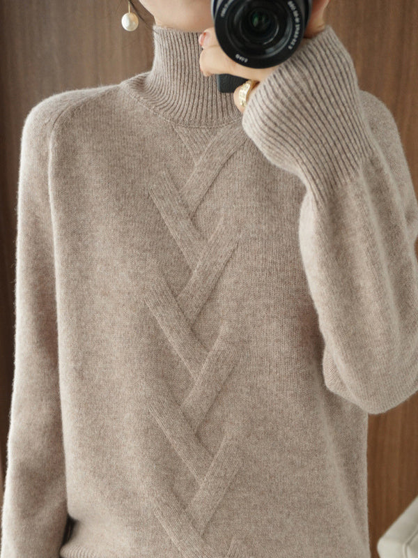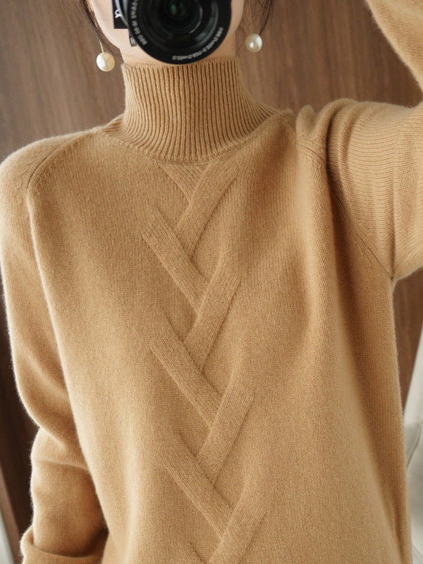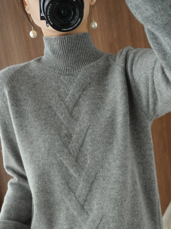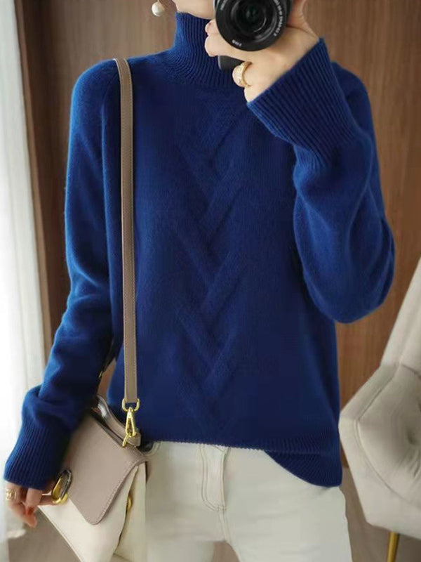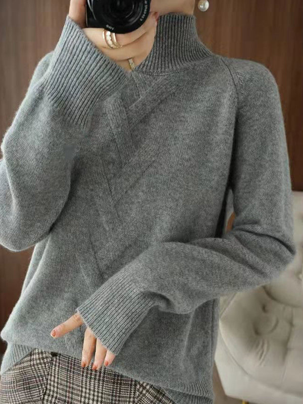 Casual Loose Long Sleeves Solid Color High-Neck Sweater Tops