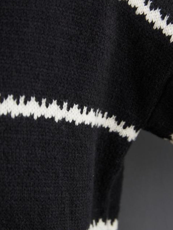 Casual Loose Long Sleeves Striped Round-Neck Sweater Tops