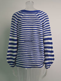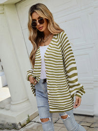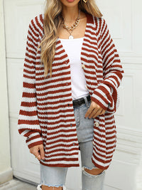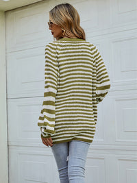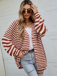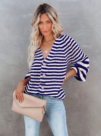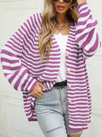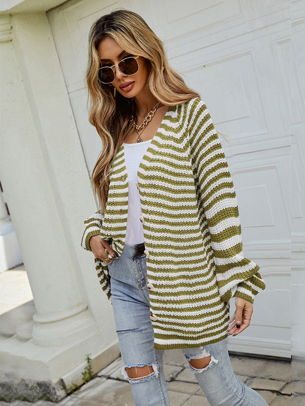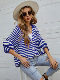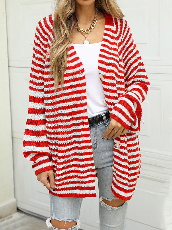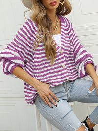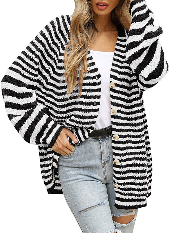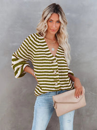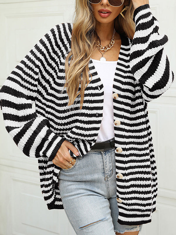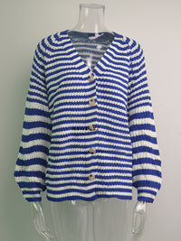 Casual Loose Long Sleeves Striped V-Neck Cardigan Tops