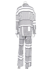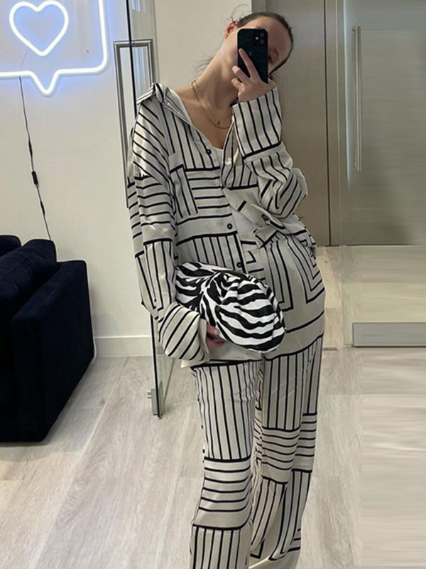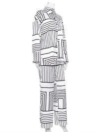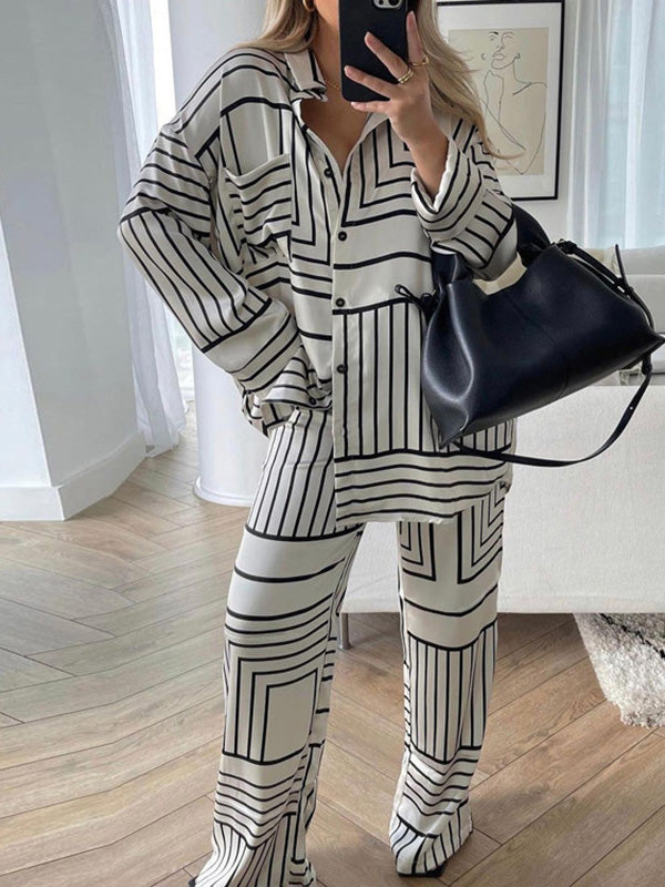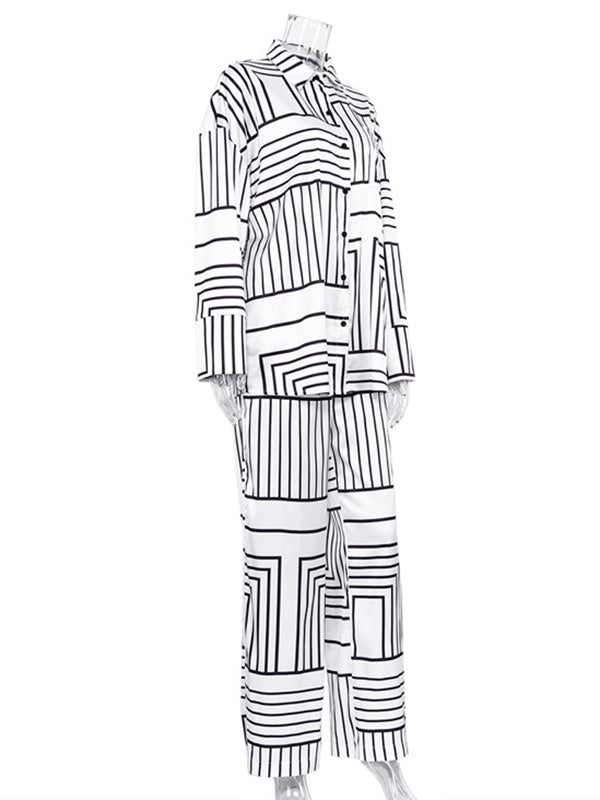 Casual Loose Printed Lapel Collar Blouses Tops & Wide Leg Pants Two Pieces Set