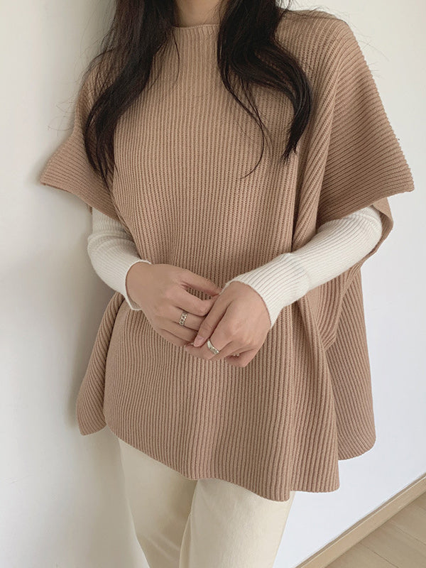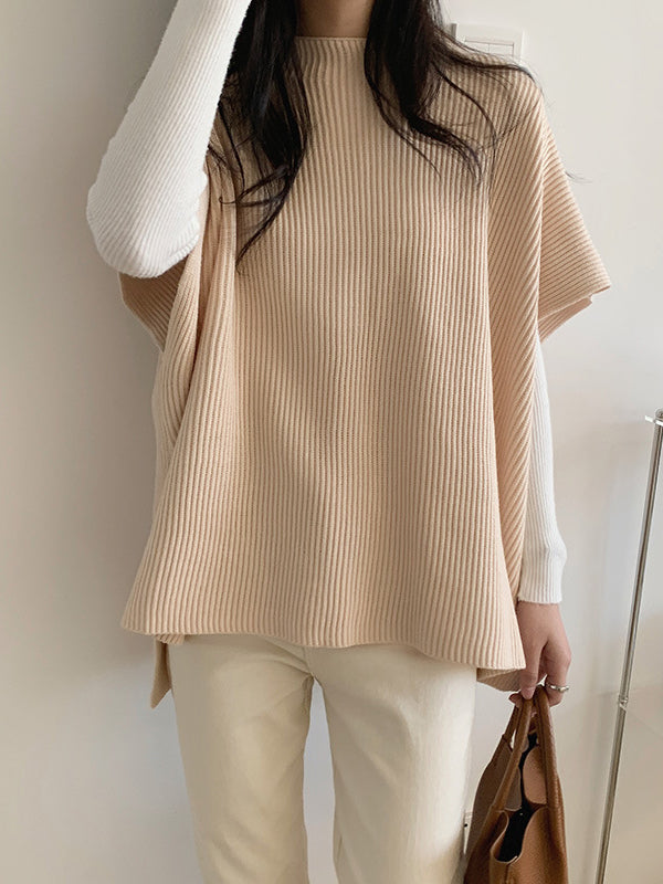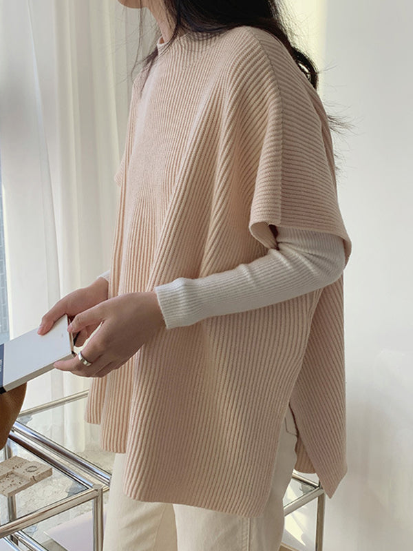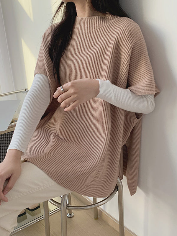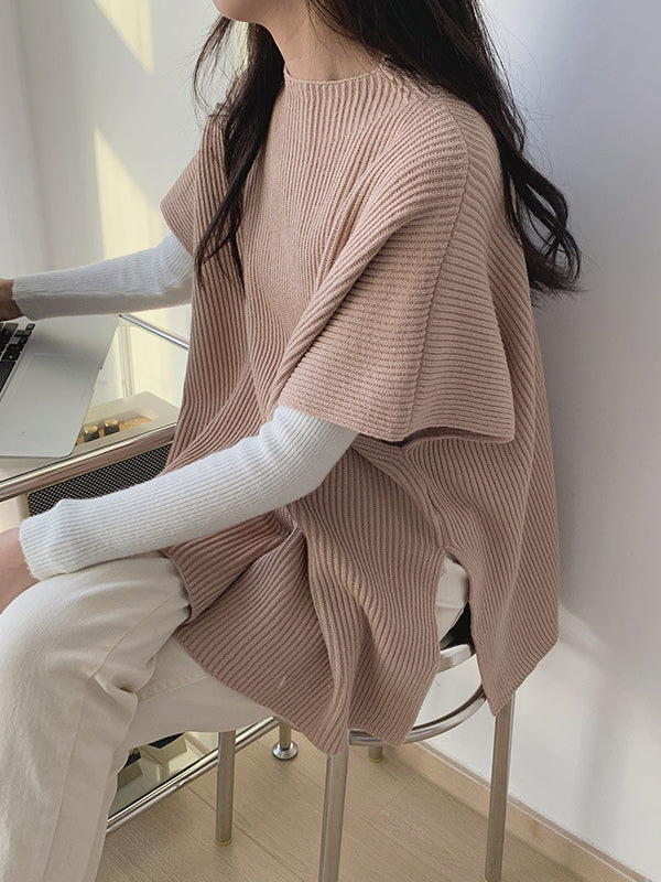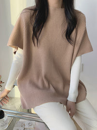 Casual Loose Short Sleeves Solid Color Round-Neck Sweater Tops Vest Top