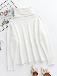 Casual Loose Solid Color High-Neck Long Sleeves Knitwear