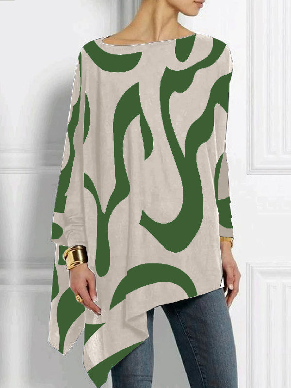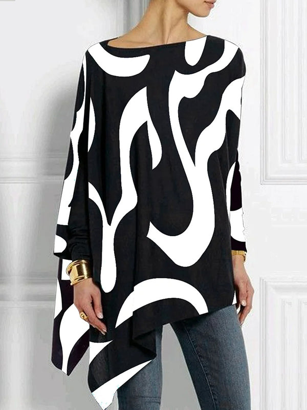 Casual Loose Three-Quarter Sleeves Printed Asymmetric T-Shirts Tops