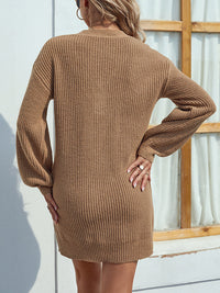 Casual Puff Sleeves Solid Color V-Neck Sweater Dresses