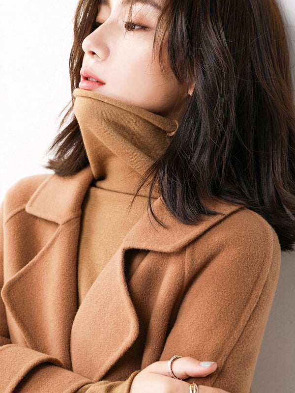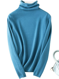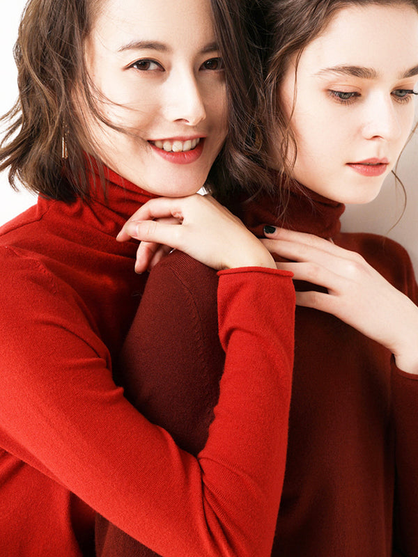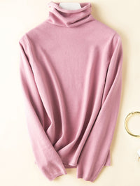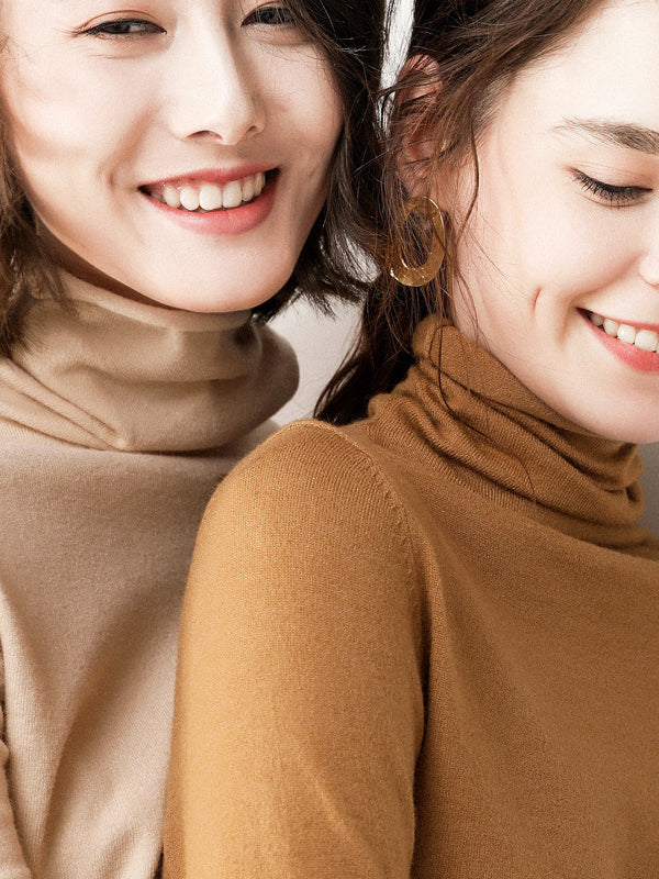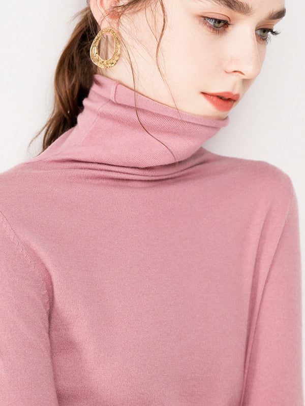 Casual Skinny Long Sleeves Solid Color Heaps Collar Sweater Tops Pullovers