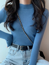 Casual Skinny Long Sleeves Solid Color High-Neck Sweater Tops