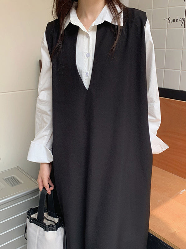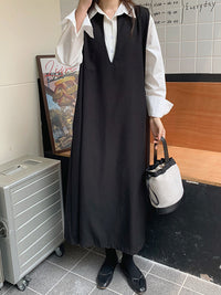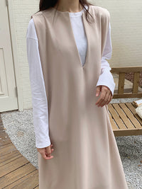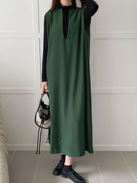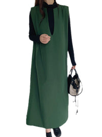 Casual Sleeveless Loose Solid Color V-Neck Midi Dresses