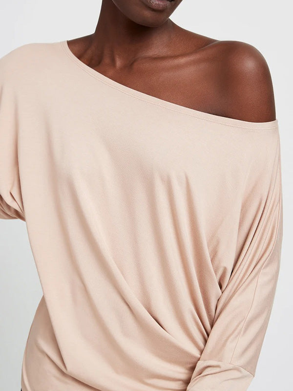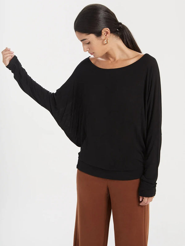 Casual Solid Color Batwing Sleeves Long Sleeves T-Shirt Top