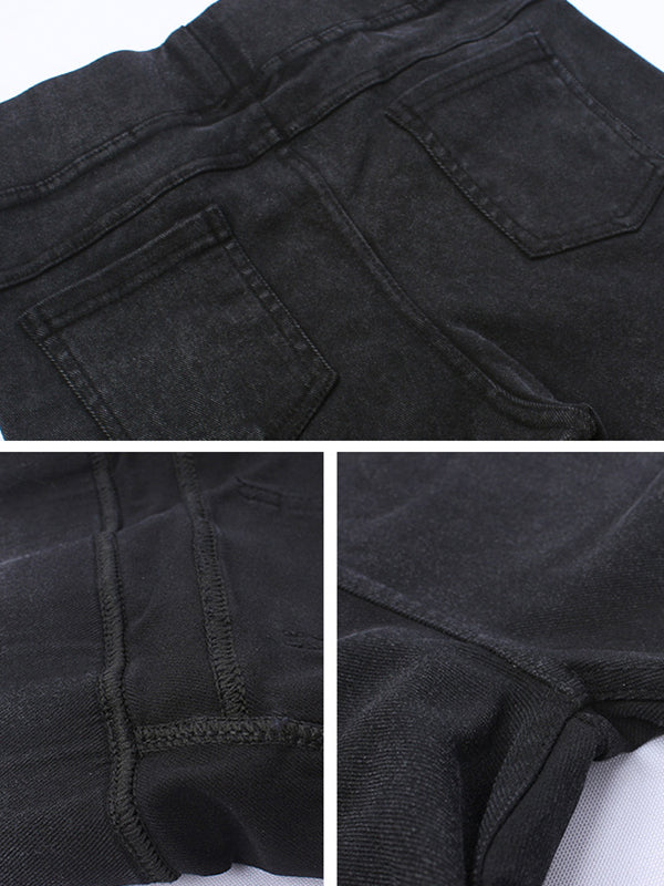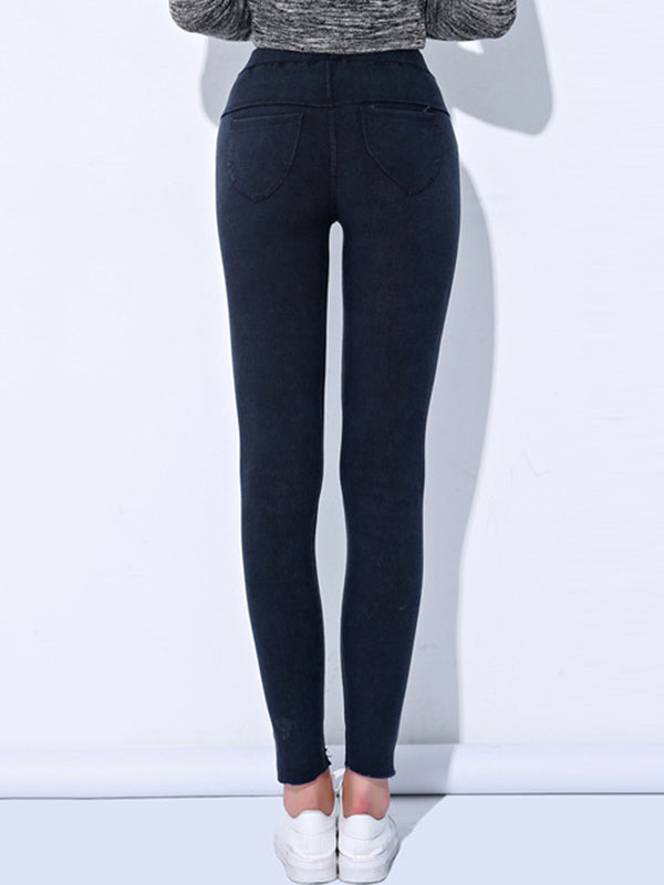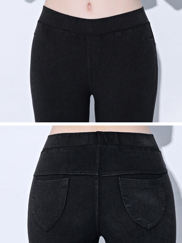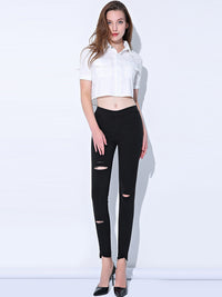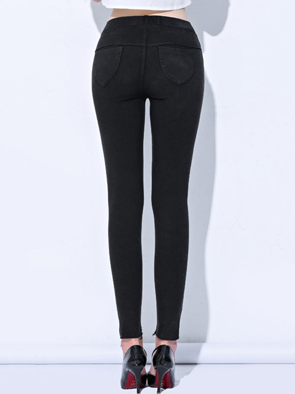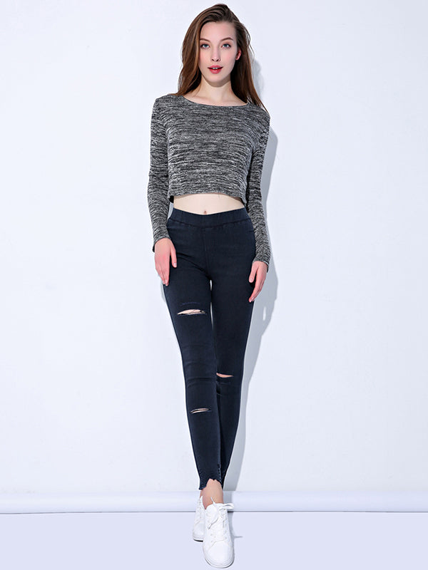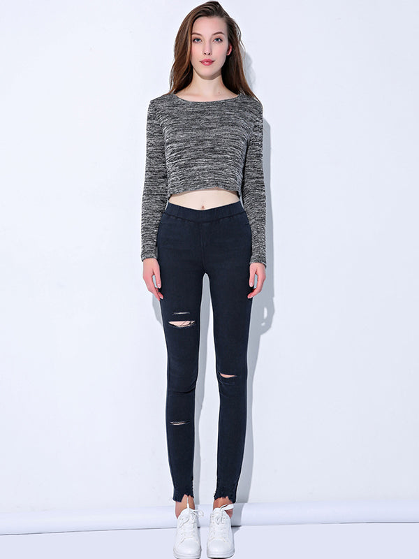 Casual Solid Color Hollow Fringed Skinny Leg Pants