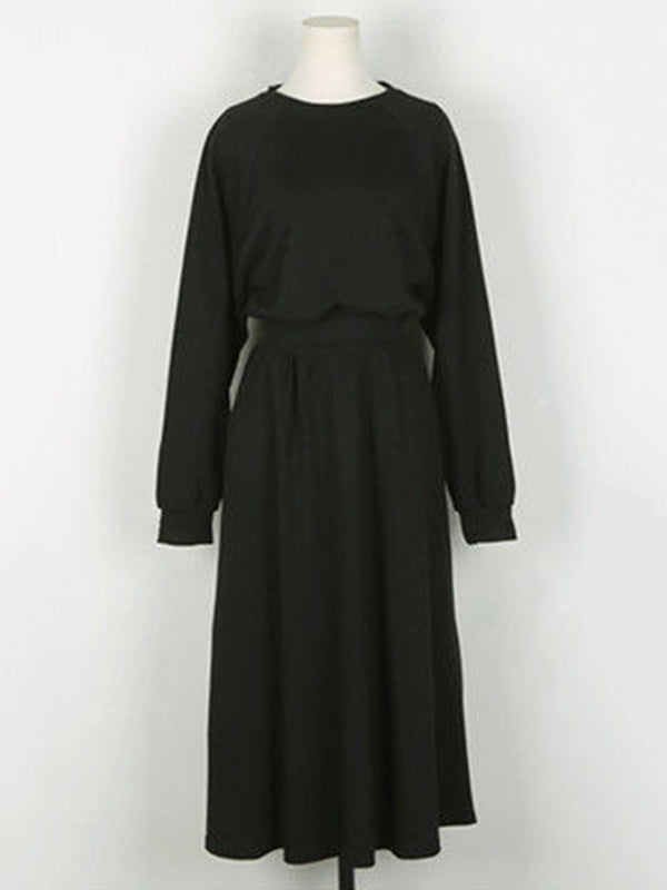 Casual Solid Color Long Sleeves Sweatshirt Dress Midi Dress