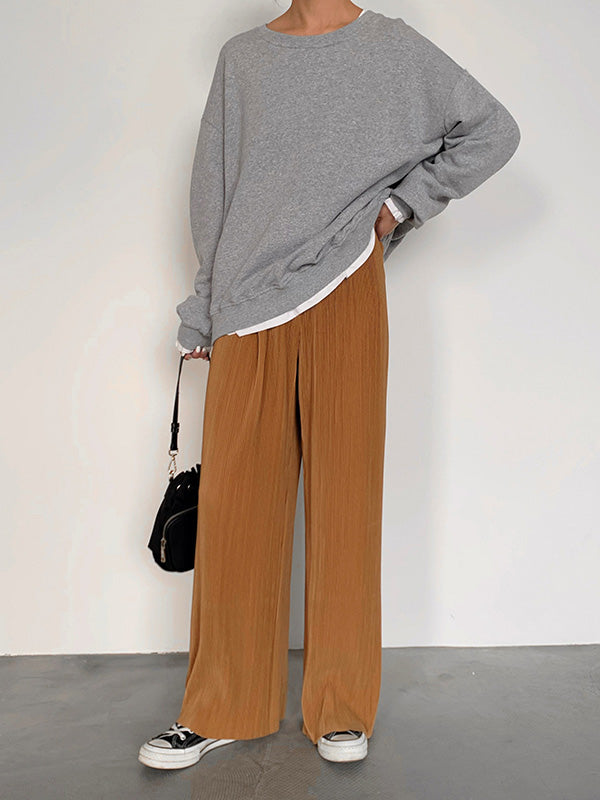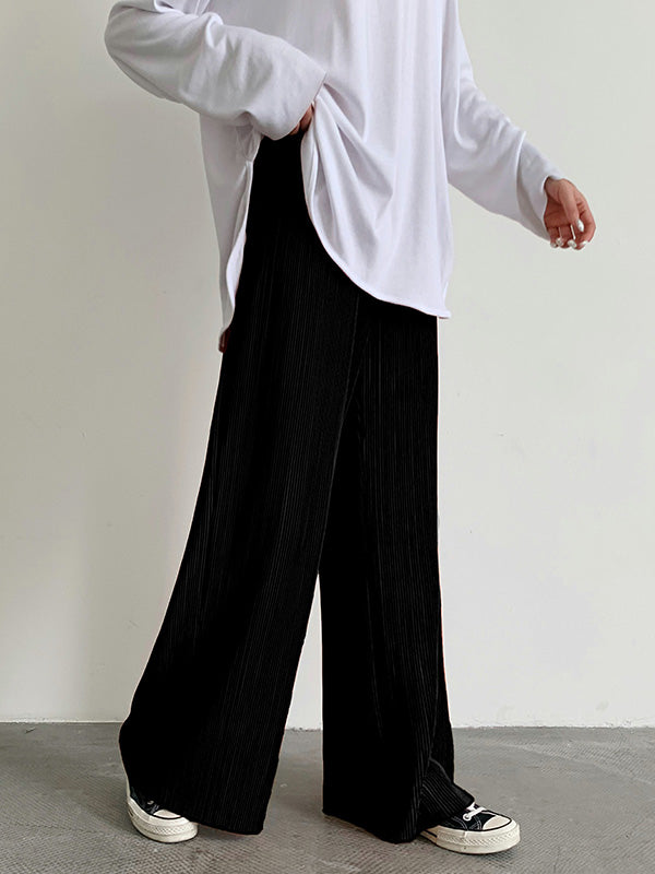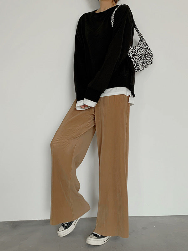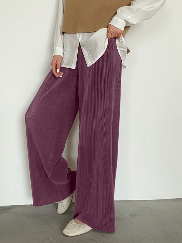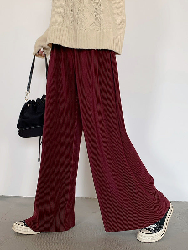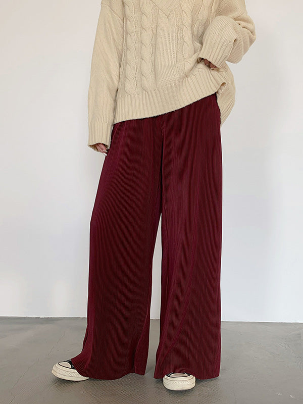 Casual Solid Color Pleats Capri-Pants Bottoms