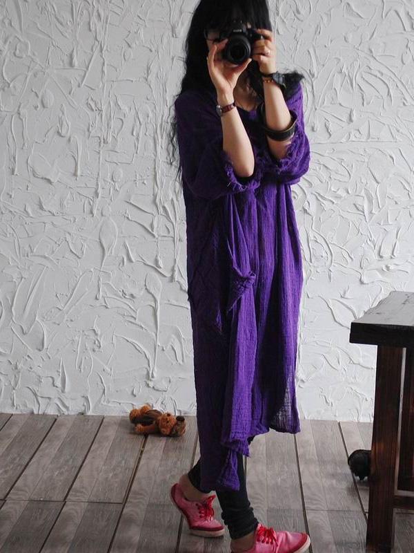 Casual Texture Ramie Cotton Long Robe