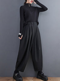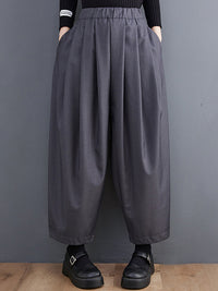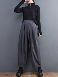 Casual Wide Leg Loose Pleated Solid Color Pants