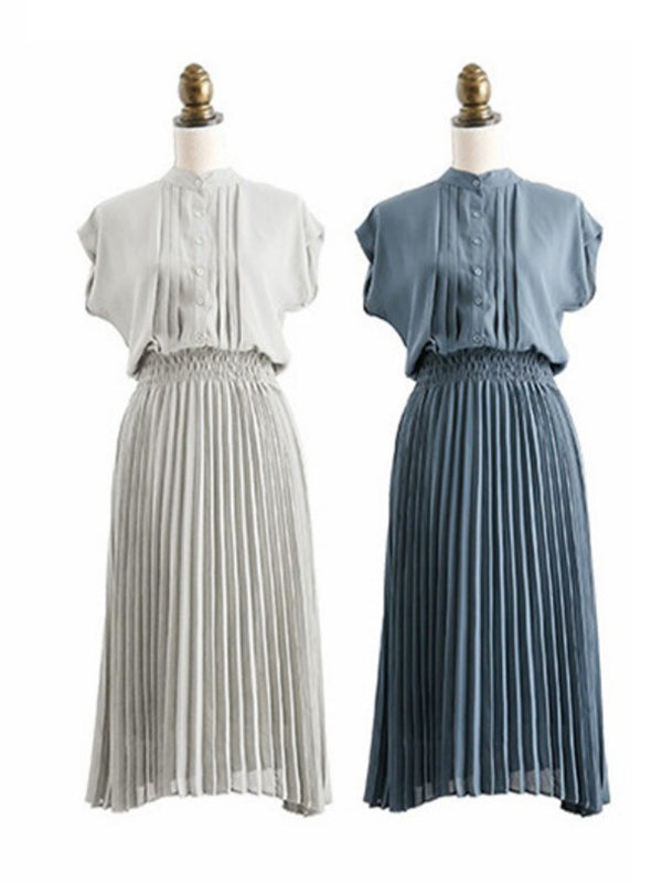 Chiffon 5 Colors Loose Pleated Split-Joint Dress