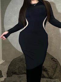 Contrast Color Long Sleeves Skinny Round-Neck Maxi Dresses