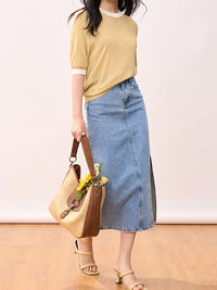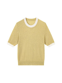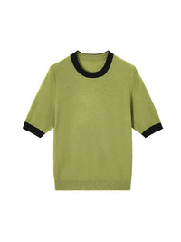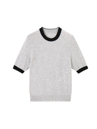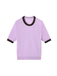 Contrast Color Loose Short Sleeves Round-Neck T-Shirts