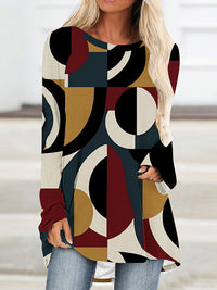 Contrast Color Printed High-Low Long Sleeves Round-Neck T-Shirts Tops
