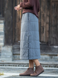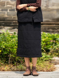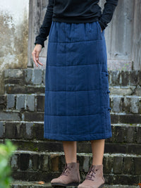 Cotton-Padded Clothes Keep Warm Quilted Solid Color Split-Joint Velvet Loose Skirts Bottoms