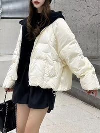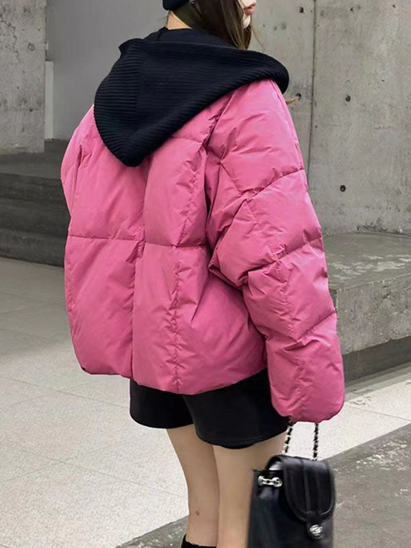 Long Sleeves Loose Detachable Quilted Zipper Hooded Down Coat