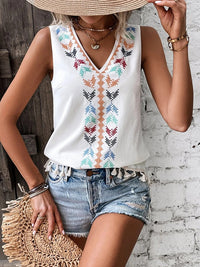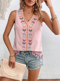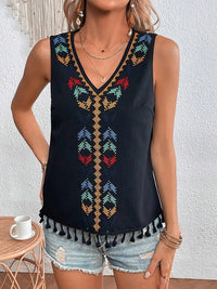 Embroidered Tasseled Loose Sleeveless V-Neck Vest Top