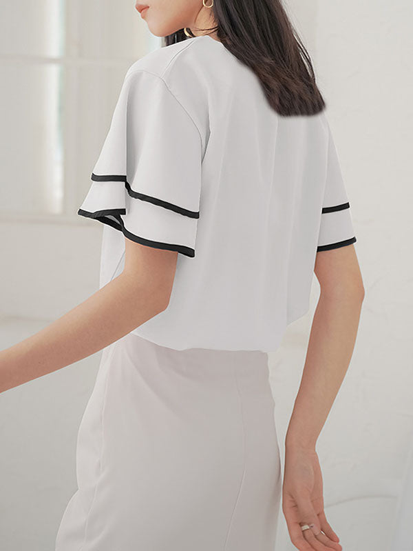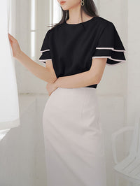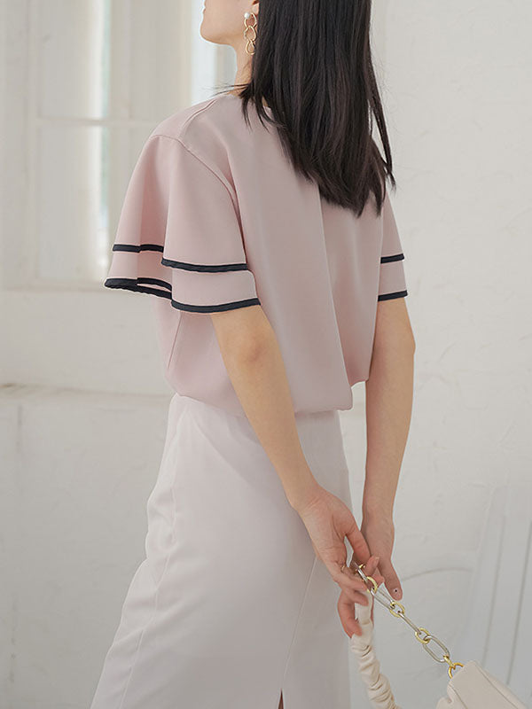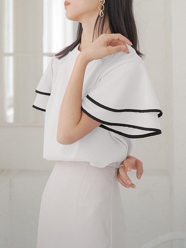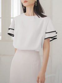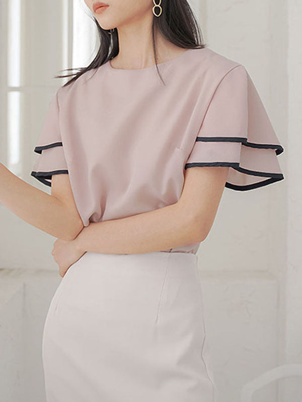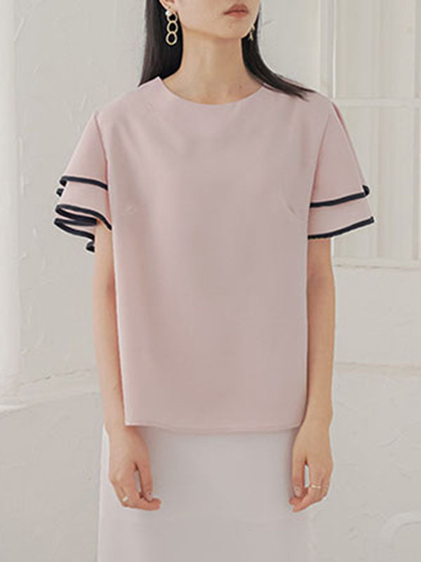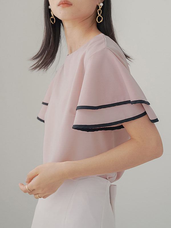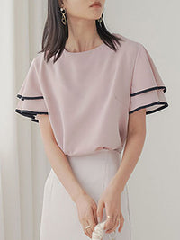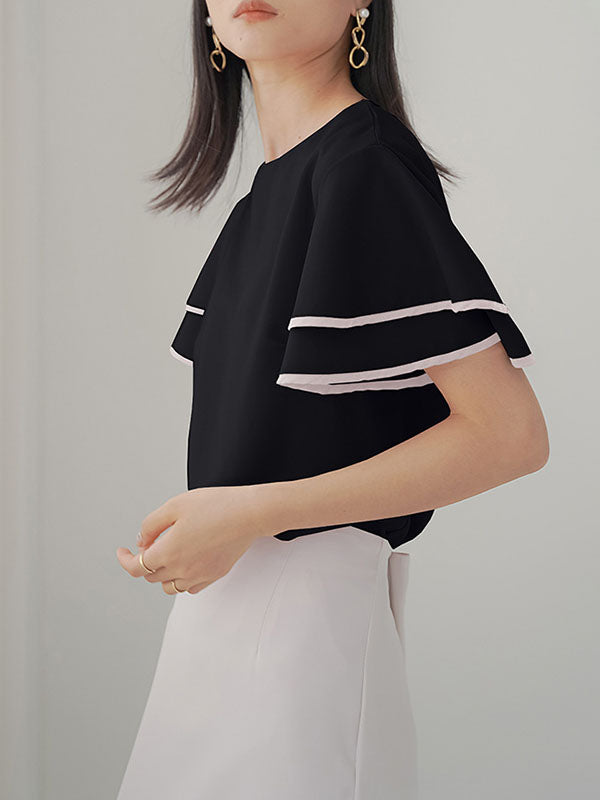 Falbala Tiered Short Sleeves Round-Neck T-Shirts Tops