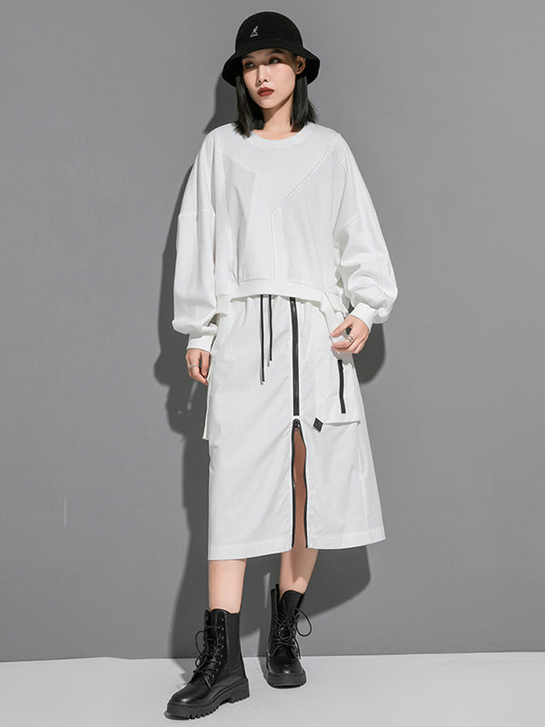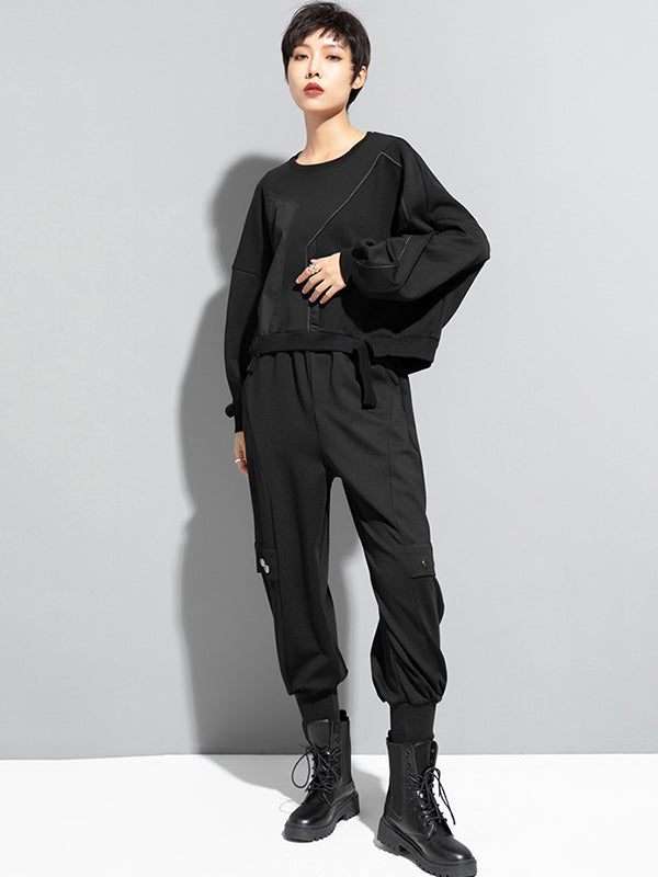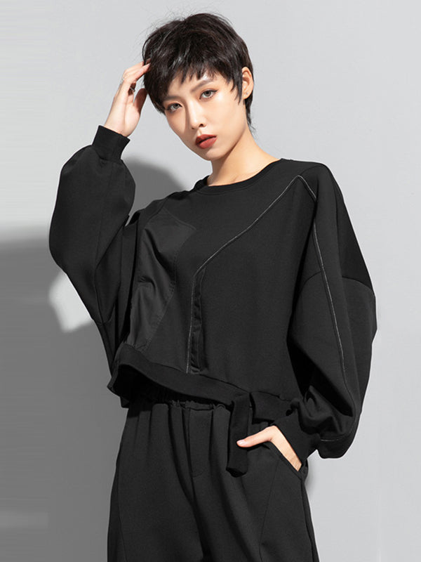 Fashion Batwing Sleeves Irregularity Solid Color Round-Neck Sweatshirt Tops