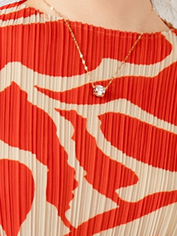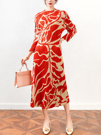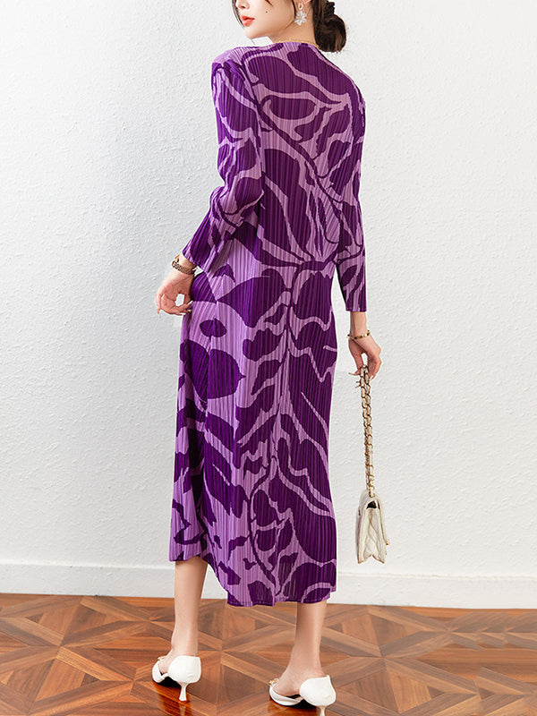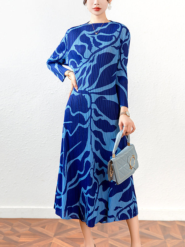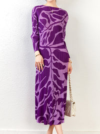 Fashion Floral Printed Pleated Long Sleeves Midi Dress