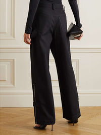 Fashion Solid Zip-Detailed Wide Leg Pants