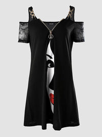 Figure Printed Zipper Irregularity Cold shoulder Mini Dresses