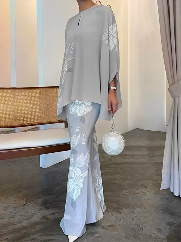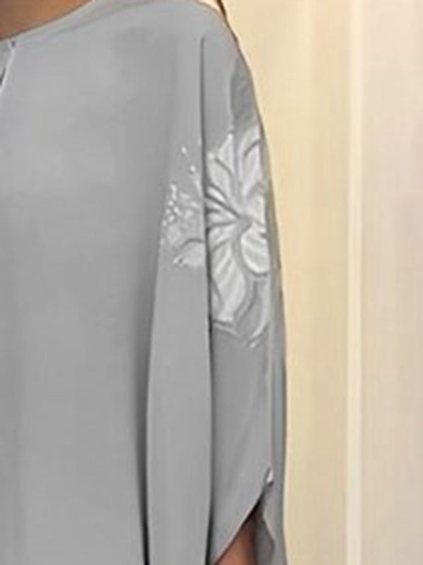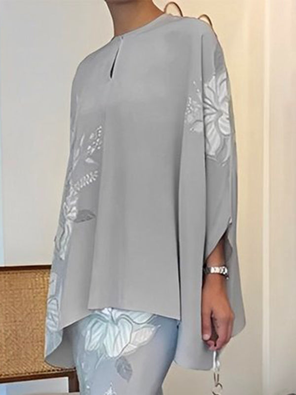 Floral Printed Hollow Split-Joint Batwing Sleeves Loose Round-Neck Blouses