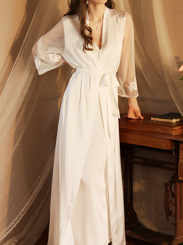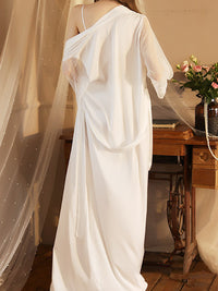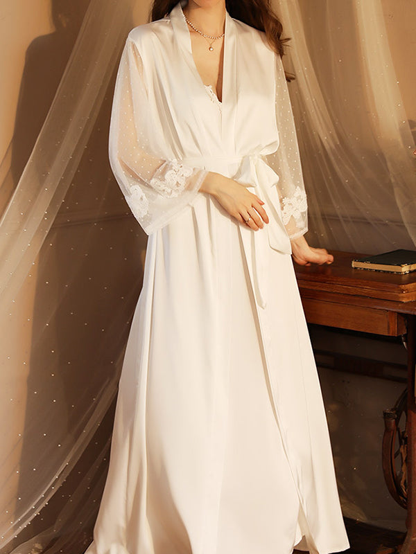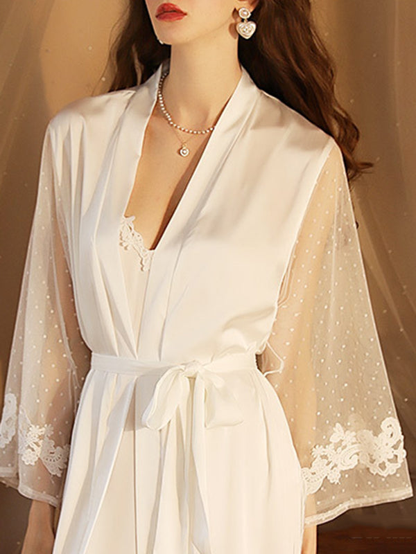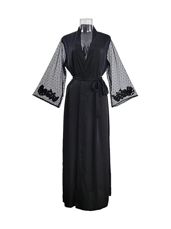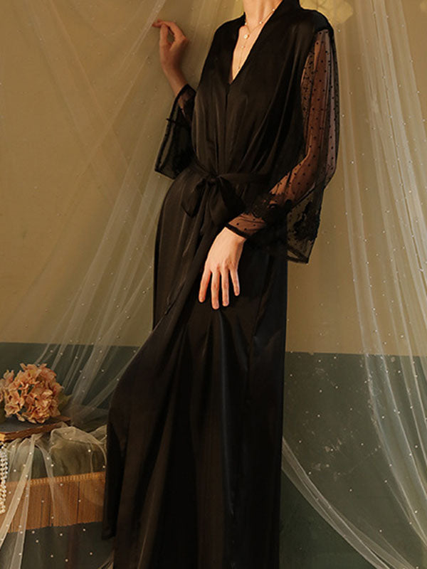 Gauze Ribbed Split-Joint Loose V-neck Robes Intimates&Pajamas