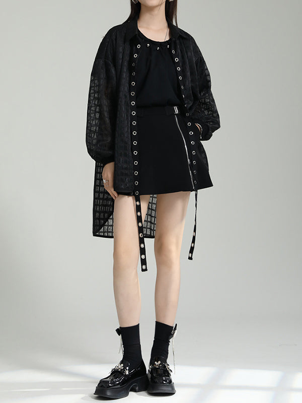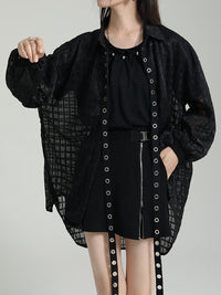 Gauze See-Through High-low Long Sleeves Round-neck Blouses&shirts Tops