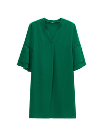 Hollow Solid Color Split-Joint Flared Sleeves Loose V-Neck Mini Dresses