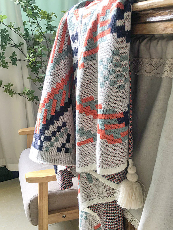 Home Keep Warm Contrast Color Jacquard Blankets Accessories