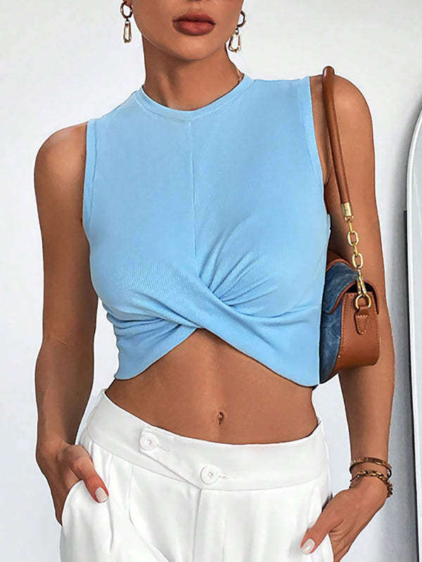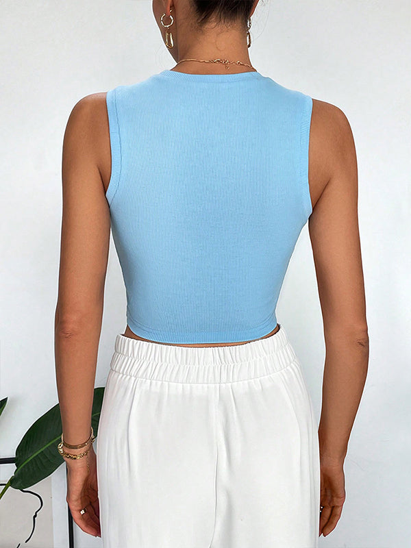 Knot Solid Color Skinny Sleeveless Round-Neck Vest Top