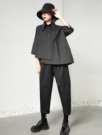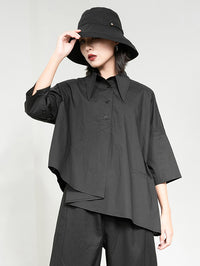 Leisure Fashion Loose Irregularity Solid Color Polo Blouses&Shirts Tops