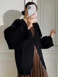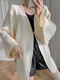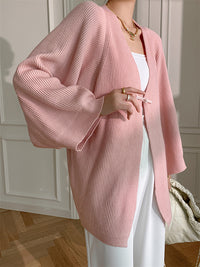Long Sleeves Loose Solid Color Knitted Cardigan Tops