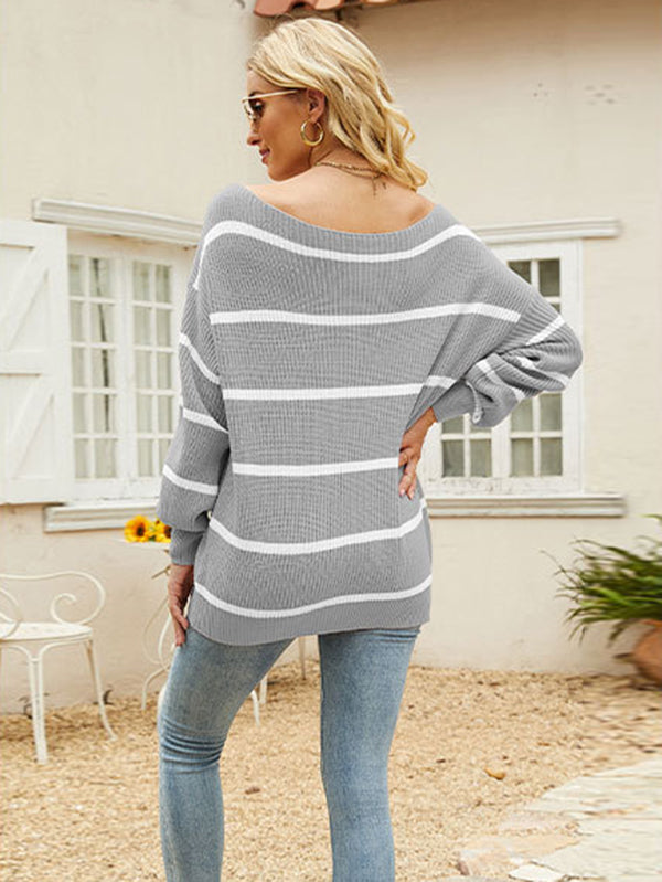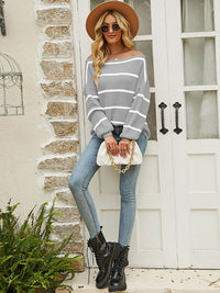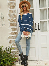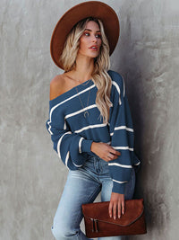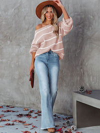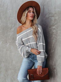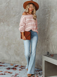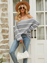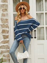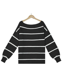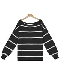 Long Sleeves Striped Off-The-Shoulder Sweater Tops