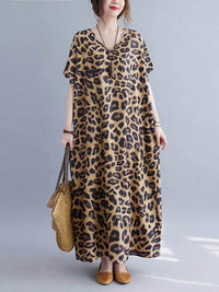 Loose Leopard V-Neck Batwing Sleeves Maxi Dress