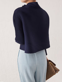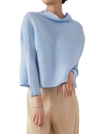 Loose Long Sleeves Pleated Solid Color High-Neck T-Shirts Tops