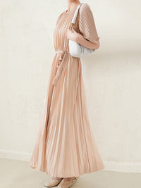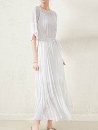 Loose Pleated With Waistband Solid Color Round-Neck Maxi Dresses