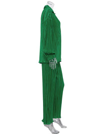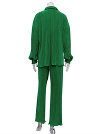 Loose Solid Color Pleated Blouse&Wide Legs Pants 2 Pieces Set