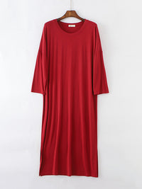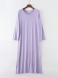 Modal Long Sleeve Split-Side Loose Pajamas Dress