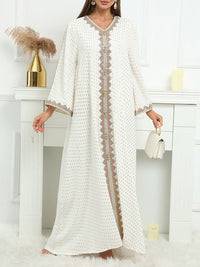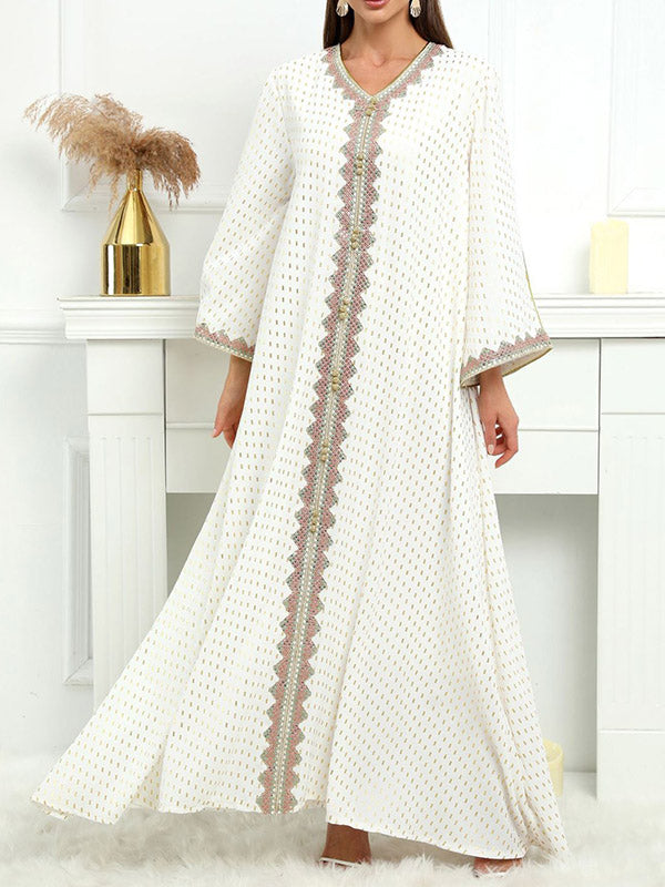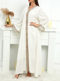Muslim Polka-Dot Batwing Sleeves Long Sleeves V-Neck Maxi Dresses
