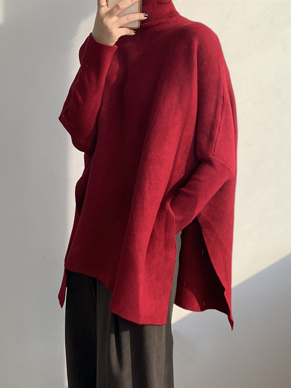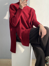 Original 4 Colors Split-Side High-Neck Long Sleeves Sweater Top